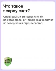 / Новости / • Эскроу-счет – это специальный банковский счет для безопасного проведения расчетов между покупателем и продавцом (заказчиков и подрядчиком). Получить деньги с такого счета подрядчик сможет только после завершения стройки и регистрации права собственности на жилой дом. Строительство объекта он ведет на собственные или заемные средства.