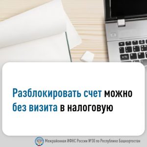 Межрайонная ИФНС России № 30 по Республике Башкортостан напоминает, что разблокировать счет можно без визита в налоговую! Если ваши операции приостановлены из-за неуплаты налогов, не спешите паниковать! Главное — погасить задолженность. Для этого воспользуйтесь электронными сервисами ФНС России. Вы можете отправить обращение через личный кабинет и прикрепить документы о погашении задолженности. Также есть возможность быстро связаться с оператором Центра помощи по снятию ограничений с расчетного счета через сервис «Оперативная помощь: разблокировка счета» (service.nalog.ru/ens-help/). В течение суток вам сообщат статус решения и варианты для отмены приостановления!