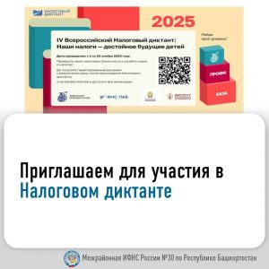 Инспекция приглашает всех принять участие в IV Всероссийском Налоговом диктанте «Наши налоги – достойное будущее детей», который проходит с 1 по 20 ноября 2025 года. Основная тематика Всероссийского Налогового диктанта: электронные сервисы ФНС России, виды налогов для физических лиц, налоговые льготы и вычеты, специальные налоговые режимы, права и обязанности налогоплательщиков, а также специальный блок, приуроченный к 35-летнему юбилею ФНС России. Участники Налогового диктанта могут: Пройти тестирование в удобном онлайн-формате на образовательной платформе РАНХиГС; Выбрать оптимальный уровень сложности – от базового до продвинутого; Получить именной электронный документ, подтверждающий уровень налоговой грамотности. Для участия в налоговом диктанте перейти по ссылке: clck.ru/3QEknp.