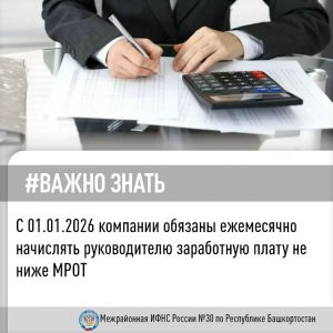 Зарплата директора не ниже МРОТ В соответствии с п. 137 ст. 2 Федерального закона N 425-ФЗ с 01.01.2026, если за календарный месяц расчетного периода сумма вознаграждений, начисленных руководителю по п. 1 ст. 420 НК РФ (кроме указанных в ст. 422 НК РФ), составляет менее одного МРОТ, установленного на начало такого периода, эту сумму для целей исчисления страховых взносов следует принимать равной одному МРОТ. Таким образом, с 01 января 2026 года, все коммерческие организации, независимо от того, осуществляется деятельность или нет, обязаны ежемесячно начислять руководителю заработную плату не ниже МРОТ. Страховые взносы с МРОТ руководителя уплачиваются за весь период, когда физическое лицо числится единоличным органом, независимо от наличия трудового договора и количества отработанного времени. Ежемесячно (ежеквартально), в срок до 25 числа месяца, следующего за отчетным, по таким руководителям следует представлять персонифицированные сведения и ежеквартальный Расчет по страховым взносам. МРОТ в 2026 году составит 27 093 рубля. В случае не исчисления страховых взносов самостоятельно, налоговым органом будут доначислены страховые взносы, штрафы и пени. Начальник отдела камеральных проверок №5 Межрайонной ИФНС России №30 по Республике Башкортостан