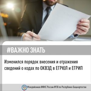ФНС России напоминает, как вносятся коды ОКВЭД в реестры ЕГРЮЛ и ЕГРИП
