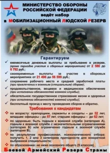 Военный комиссариат Дёмского района г. Уфа и Уфимского района информирует о том, что сегодня появилась возможность встать в ряды защитников Отечества. Создаются группы из числа мобилизационного людского резерва (резервистов) Республики для отражения БПЛА под названием МОГ – мобильная огневая группа. Во время нахождения на специальных военных сборах выплачивается средняя з/п на основной работе и от Минобороны России до 60 тыс. рублей в месяц, полное вещевое и медицинское обеспечение, проживание и питание. 📌 По всем вопросам обращайтесь в военкомат г. Уфа, Дёмский район, улица Левитана 45. 📞 Телефон 227-61-94, 281-03-18, сотовый 8-917-749-60-00.